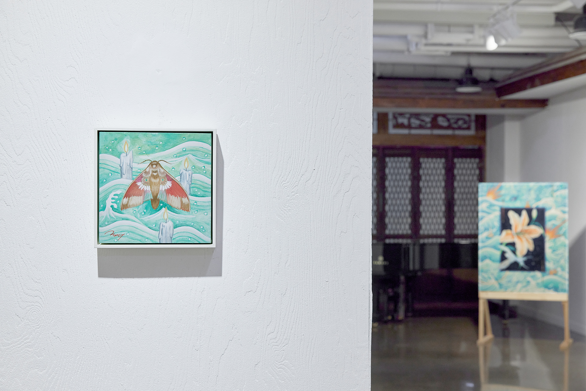 이해할 수 없는 것들을 관찰하고, 의심 없이 받아들이곤 했던 것의 이면을 살펴보는 일은 나의 작업 과정에서 중요한 한 부분이다. 이전 작업들에 이어서 꾸준히 등장하는 파도의 도상이 이 의미를 뒷받침한다. 진실과 선악을 가르기 힘든 파도와 같은 세계에서 중심을 지키고자 하는 나름의 수행이 되는 것이다.
